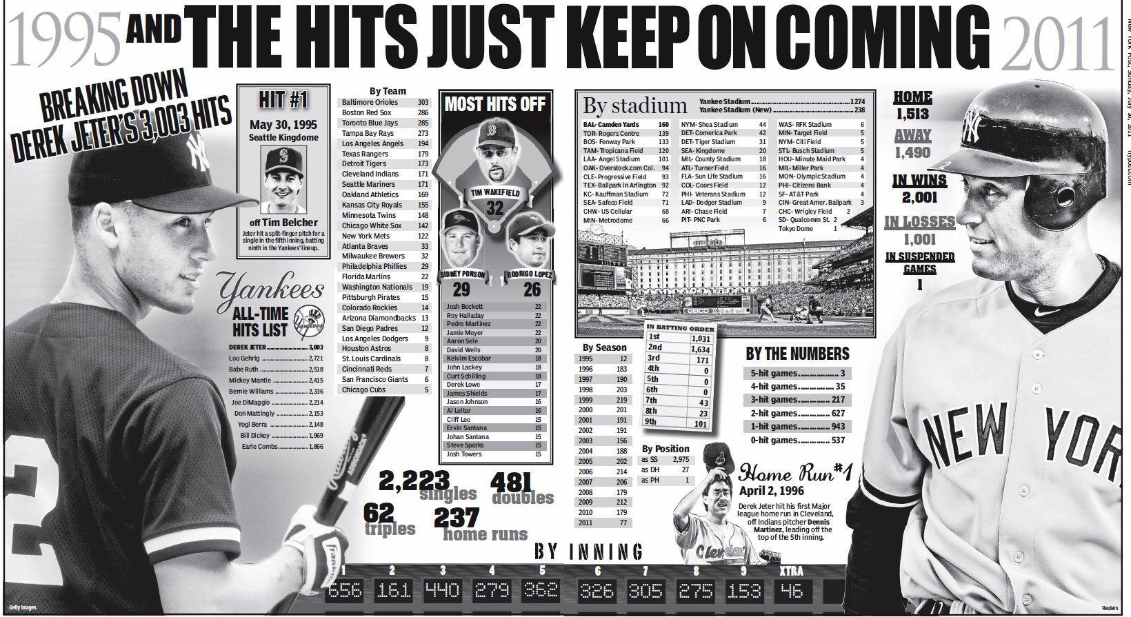 - #2 Jeter hit #3,000 on his second hit at exactly 2:00PM EST.